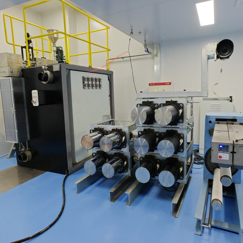 ·Sistema de extrusão e trefilação: Extrusora de parafuso único com cinco pares de godets quentes